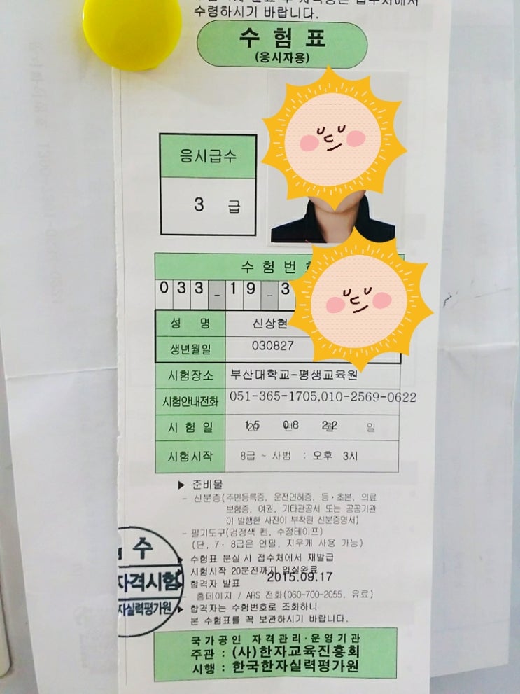 손품을 팔아본 결과 한국어문회보다는 한자교육진흥회 시험이 단기간에 준비하기 쉽다고 해서 한자교육진흥회 3급 시험을 접수하기로 했습니다.