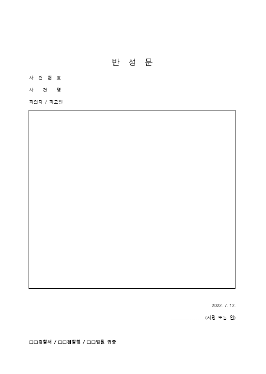 궁금하신 분들을 위해 먼저 답변을 드리자면 반성문 양식은 따로 정해져 있지 않습니다.