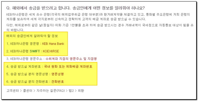KEB하나은행 해외송금정보