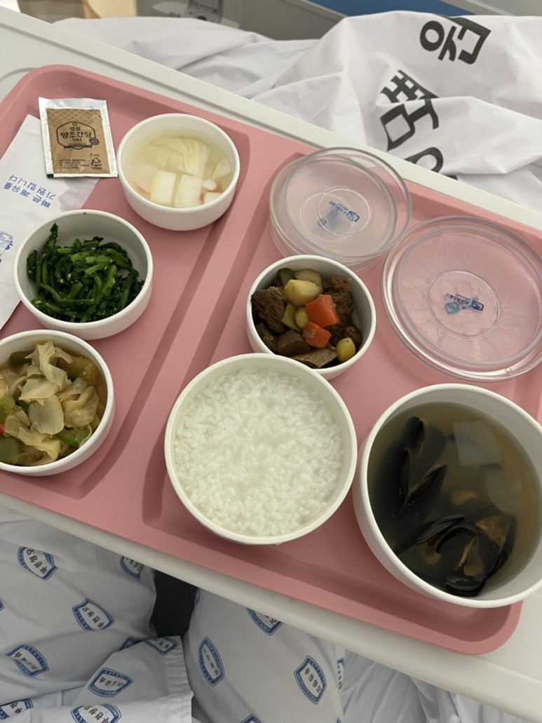 입원 직후에는 어안이 벙벙해 허기도 느끼지 못했지만 큰방 한쪽에서 조용히 새해를 맞았고 현자타임이 오는 순간부터는 배가 너무 고팠다. 빨리 밥 시간만 오기를 기다렸는데 예상은 하고 있었지만 역시 죽였고 너무 맛이 없었다 근데 내가 힘이 있나 먹어야지.