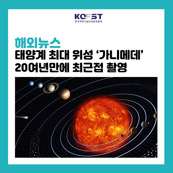 미국 항공우주국(NASA)은 목성 탐사선 주노호가 목성의 최대 달인 가니메데를 20년 만에 최근 직접 비행하며 촬영한 고해상도 사진을 공개했다. 주노는 6월 8일 새벽 가니메데에 1천38km까지 접근해 비행했다. 이는 2000년 5월 20일 갈릴레오 탐사선 이후 21년 만에 가니메데에 가장 근접한 것이다.
