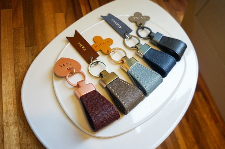 *가죽키링 기념품 제작 비체노가죽 공방에서 제작하는 수제가죽키링입니다.선물/답례품으로 단체주문되어 요청에 맞게 제작하여 기간에 맞게 보내드렸습니다.이 키링은 외부/내부 안감까지 모두 소가죽으로 제작되었으며 상담을 통해 가죽컬러부터 이니셜컬러, 금속장식, 스티치컬러까지 선택하실 수 있습니다.(원데이클래스에서는 수강이 불가하며 주문제작만 가능합니다)