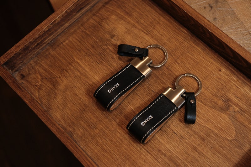 포스팅된 가죽 키링은 블랙 컬러의 가죽으로 제작되었으며 깔끔한 느낌의 아이보리 스티치와 실버 이니셜 각인을 넣었습니다.실버각인에 맞게 금속장식도 무광실버로 제작하여 고급스럽게 마무리하였습니다.