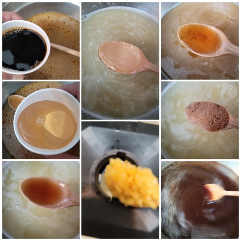 체에 친 것에 양념을 넣습니다.진간장. 맛술, 흑설탕, 참기름, 매실청, 올리고당.(후추를 넣고 설탕을 녹이는 것이, )