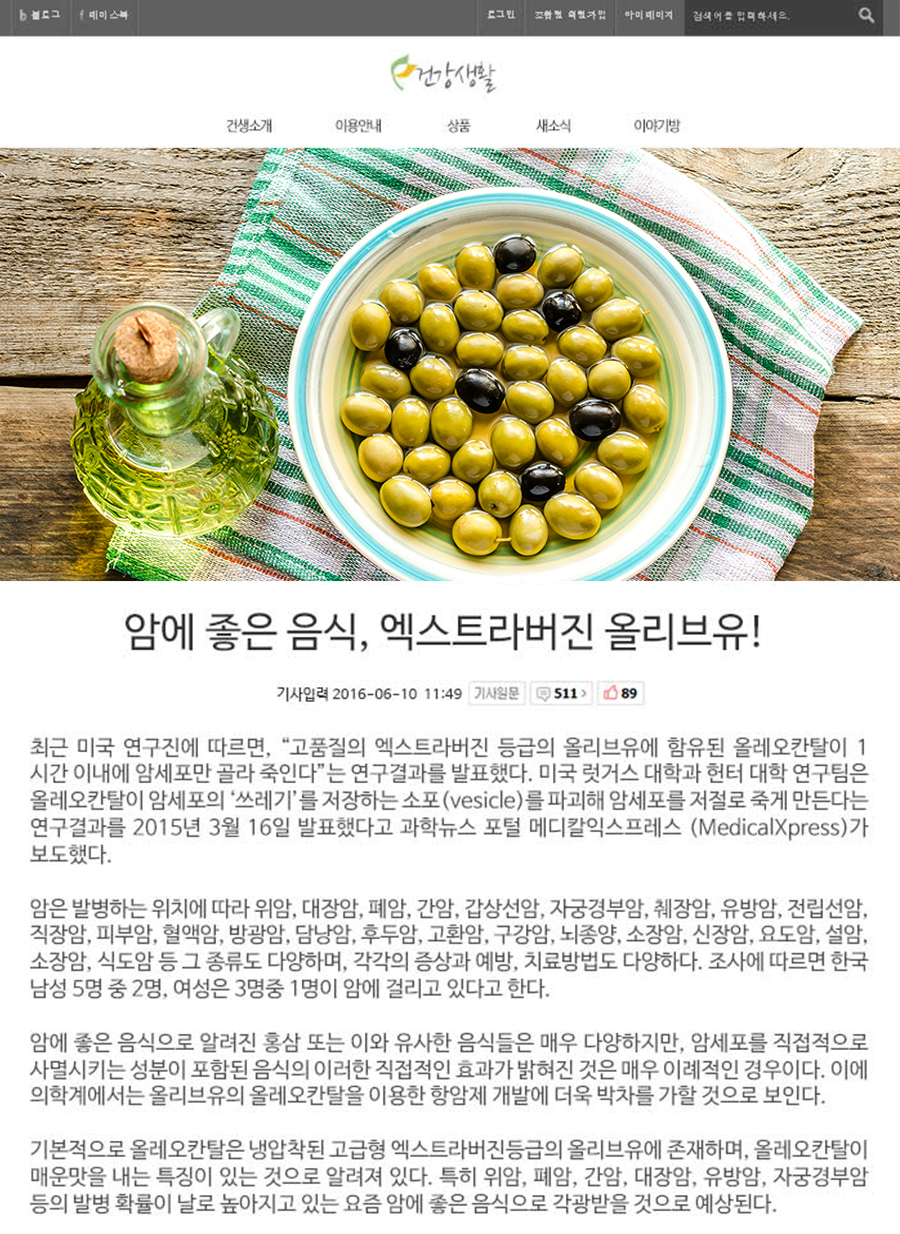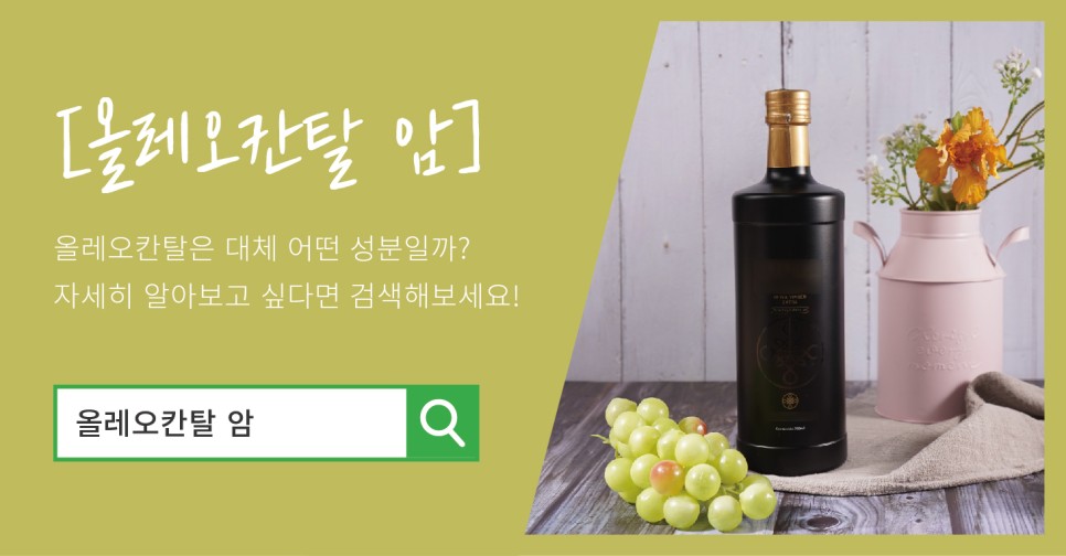 그래서 올리브 생식을 하려면 하루에 두 잔이나 소주 한 잔 정도의 양을 지켜야 한다는 것을 강조합니다. 누구나 같은 양의 올리브 오일을 먹어야 한다면 오레오칸탈 함유량이 가장 높은 올리브 오일을 먹는 것이 몸속으로 흡수되는 오레오칸탈의 양을 극대화할 수 있는 최선의 방법이 아닐까요?