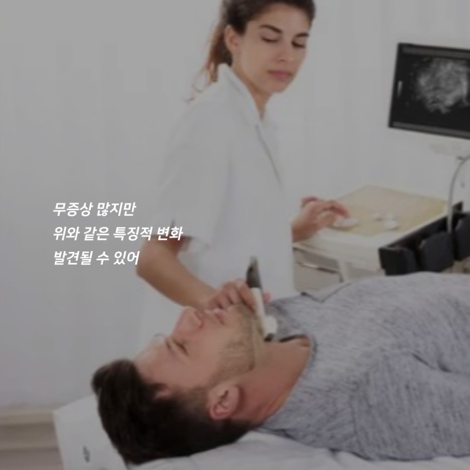 • 또한 가족력이 있거나 갑자기 목에서 쉰 소리, 압박감 등을 느끼는 경우, 관련 검사를 통해 초기에 발견하면 예후가 매우 좋을 수 있지만, 단 특징적인 증상을 평소 지속적으로 느껴온 경우 그 발견 시기가 지연될 수 있으므로 세심한 주의를 기울이며 자신의 몸 상태를 관찰해야 합니다.