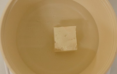 02.다시마를 끓는 물에 살짝 삶습니다.03.두부를 끓는 물에 넣어 염분을 제거합니다.