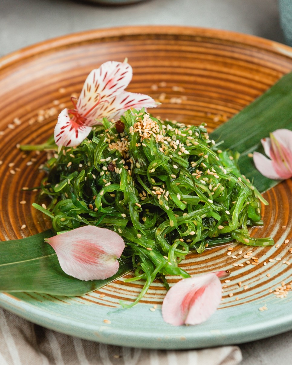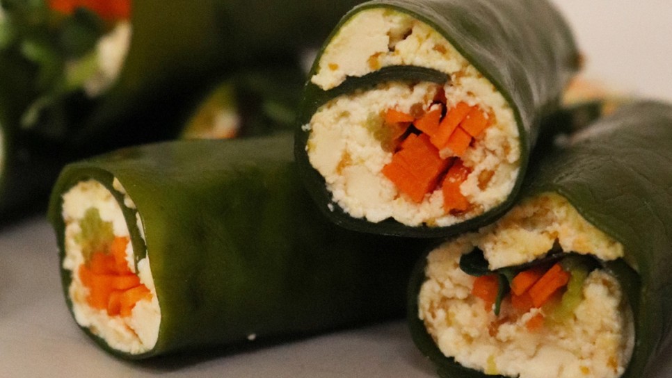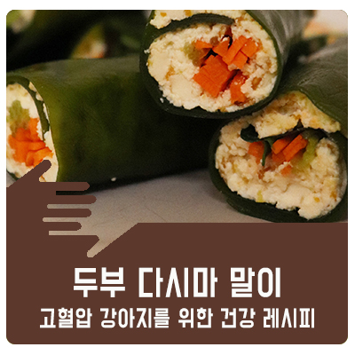 고혈압 관리를 위한 건강한 식단 레시피 #두부 다시마말이 재료 : 두부 80g, 다시마 30g, 당근 25g, 감로 가루 5g, 무즙 소량, 참기름 5g
