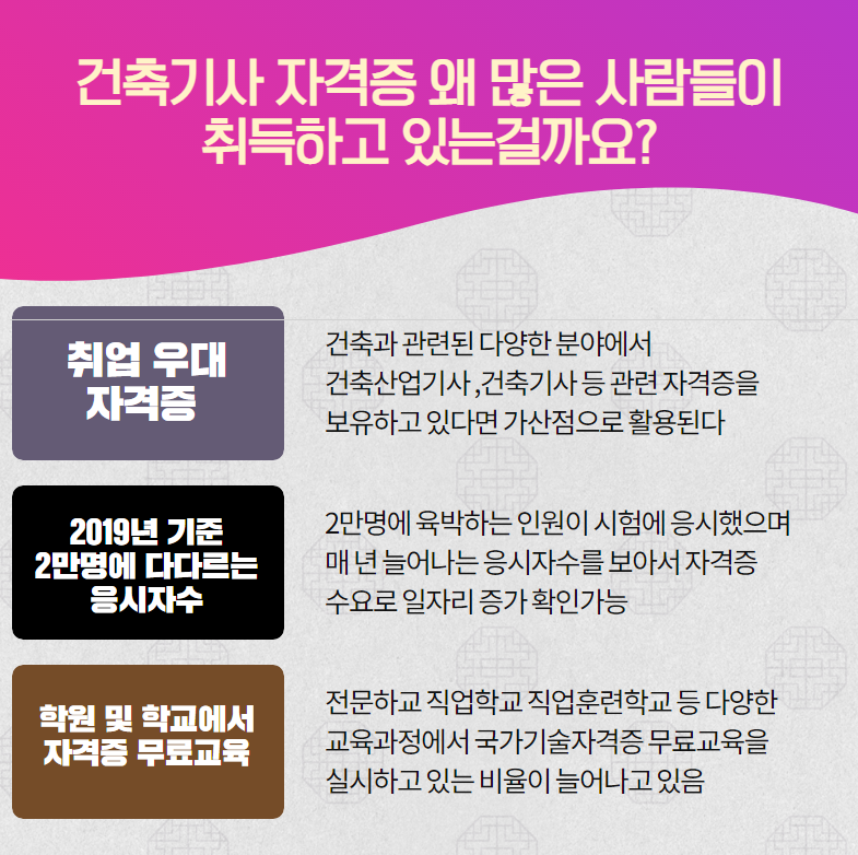 As I said earlier while preparing my certificate of construction industry engineer, I didn’t have to invest more than two years, and in my case, I was able to prepare online in just four months.At first, I didn’t know that there was such a system, so I was worried if it was really possible, but people like me who were not qualified actually prepared through this system, and many people were looking for it to improve their educational background and improve their own specifications.Except for special cases, everything was conducted online, so there were more diverse age groups than I thought while using office workers and housewives.