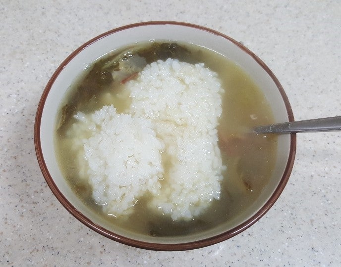 아까 백미에 물 맞춰놨잖아요.거기에 채썰어 씻어놓은 미란을 붓고 취사버튼을 누르면 곤약밥 끝!!