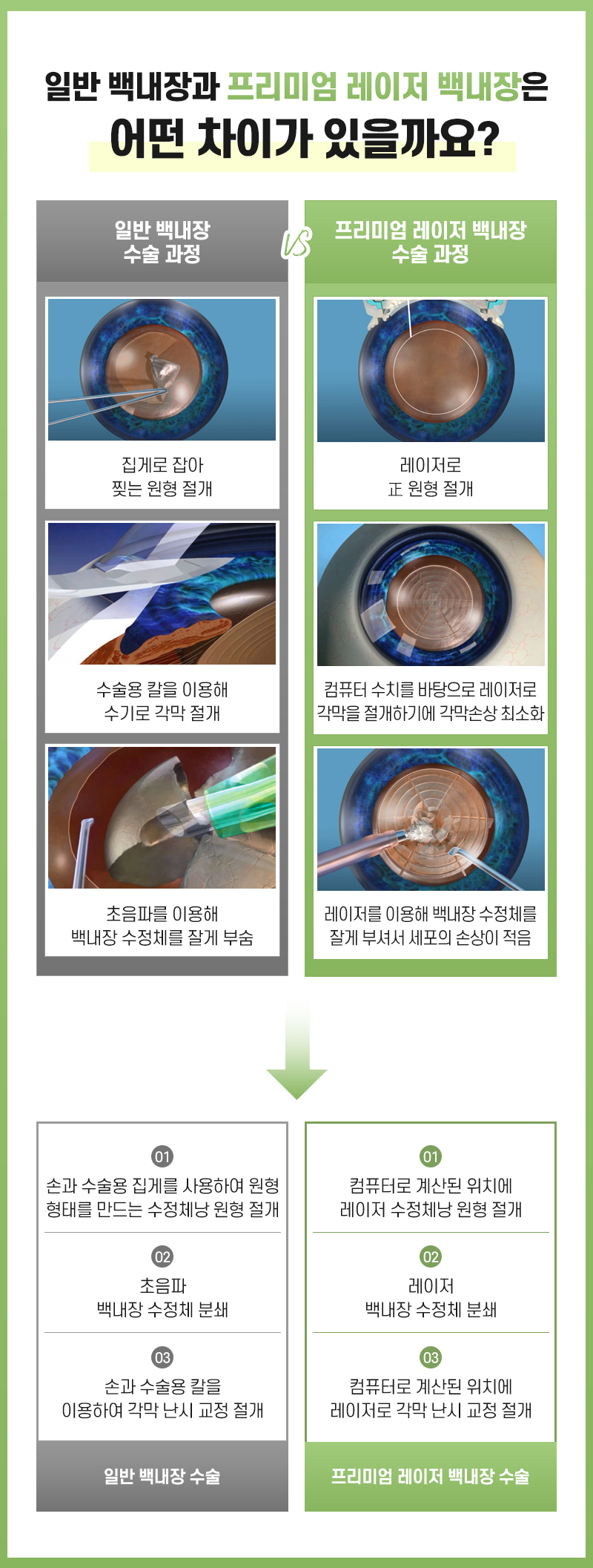 백내장 수정체도 레이저로 잘게 부수어 제거하는 것으로 안전하고 세포를 손상시키지 않고 진행할 수 있습니다.
