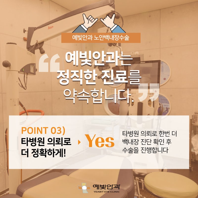 그러나 가입한 보험의 종류와 약관 등에 따라 지원되는 범위와 비용이 다를 수 있으니 광주백내장 수술을 시행하기 전 가입된 보험사나 안과 상담실을 통해 가능한지 적용범위를 꼼꼼히 살펴보시기 바랍니다.