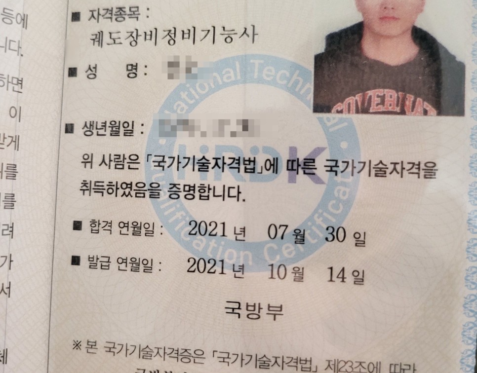 다만 한 가지 번거로운 점은 국방부에서 자격검정을 받고 합격하면 자격증 발급 시 한국산업인력공단에 따로 본인사진 등록을 해야 한다는 것입니다. 아마 국방부에서 국가기술자격증을 응시할 때는 본인 사진을 전투복 착용 사진을 요구하는데 현역이 예비역이 되면 군인이 아니게 되니까 전투복을 입은 본인 사진이 문제가 되니까 이런 방식이 됐는지.(사실 왜 이러는지 좀 이해가 안가요;)