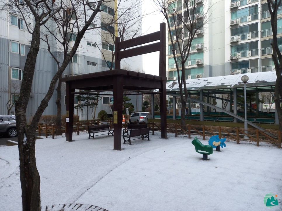 정월 보름날을 맞아 이곳을 찾았는데 아파트 어린이 놀이터의 눈이 많이 쌓여 있었습니다. 특히 놀이터에 우뚝 선 초대형 의자가 유독 눈에 띄어서 이 모습을 바라보며 추운 날씨였지만 취재를 시작했습니다.