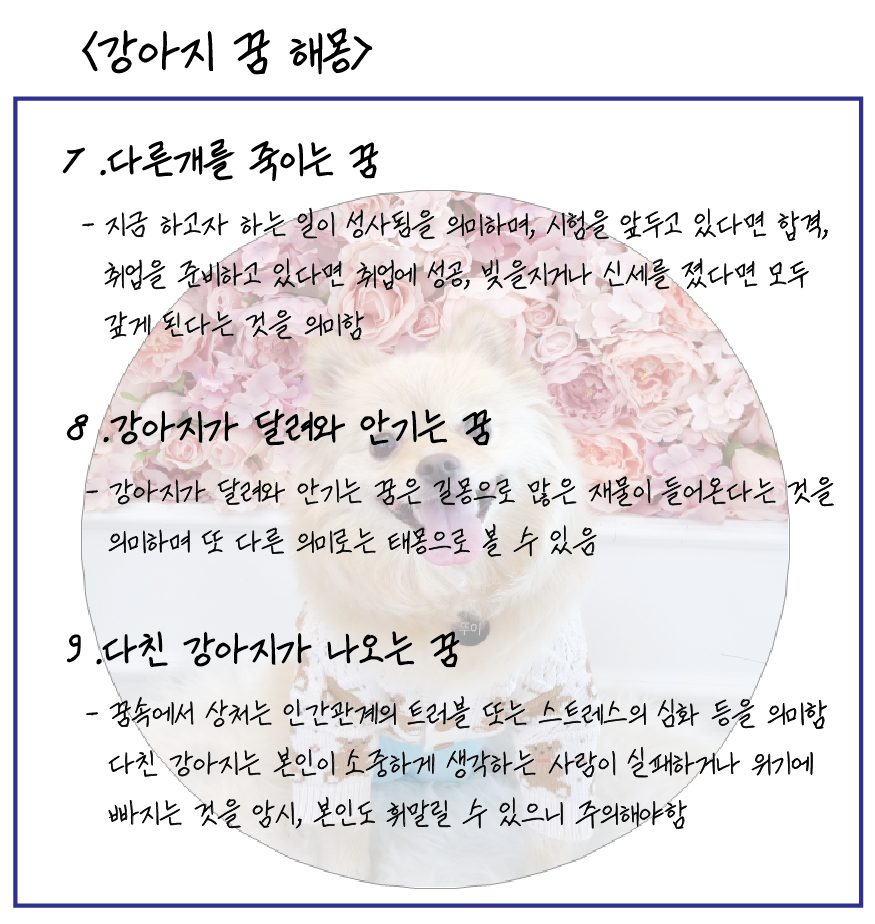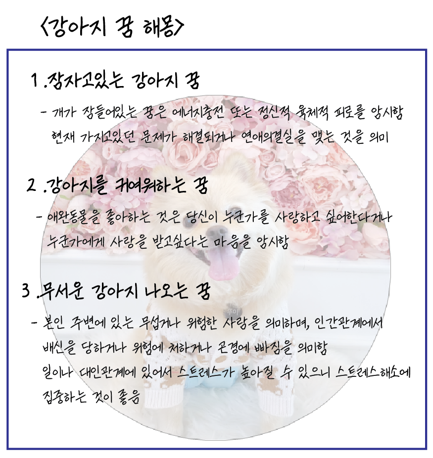 제가 꾸었던 꿈의 해몽은 알아봤으니 이번에는 다른 유형의 강아지가 나오는 꿈에 대해 알아보도록 하겠습니다~! 애완동물이 꿈에 나왔다! 그럼 트이의 견생 기록을 잊지 말고 찾아 확인해 보세요.꿈풀이 꿈은 재미삼아 해 볼테니 너무 신경쓰지 마세요. 자,그럼한번볼게요.