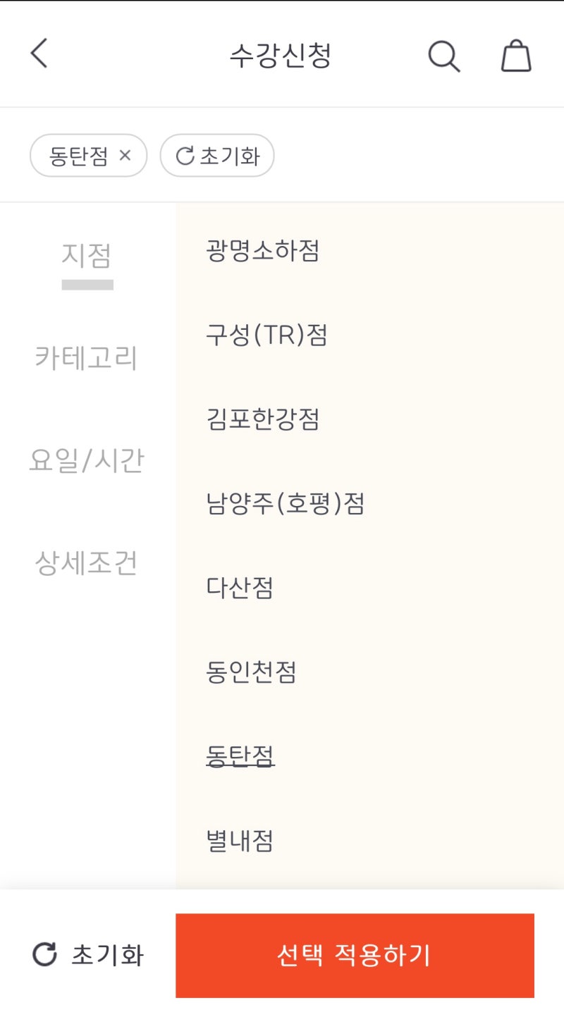 순풍 여사 집과 가까운 동탄홈플러스에 다니고 싶었지만 그 당시에는 등록할 곳이 없었다.그래서 동탄 이마트 문화센터에서 열심히 검색! 그러면 이마트 컬쳐클럽이 나온다.로그인을 하고 수강신청 탭에서 여러 조건으로 폭풍 검색을 했다.