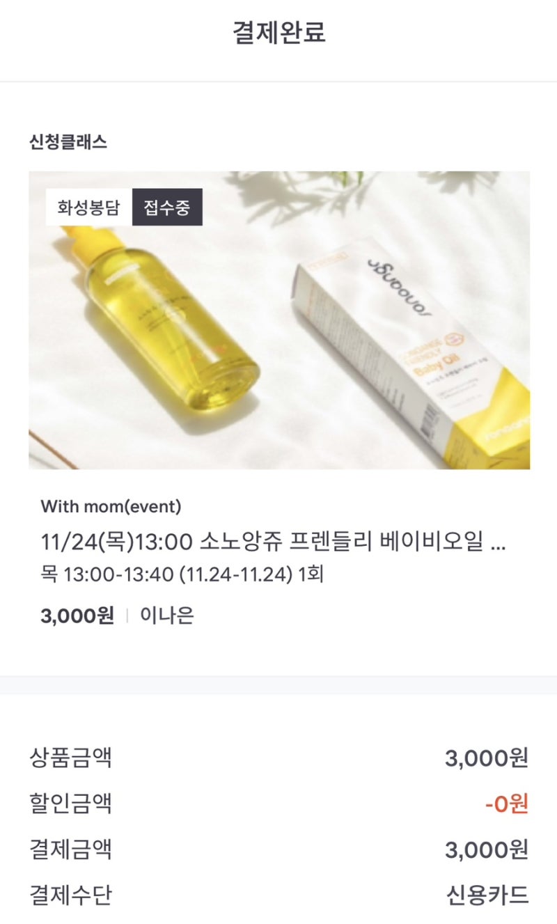 Previous image Next image 모바일용 필터를 더 설정하려면 우측 상단에 있는 깔때기 모양을 눌러 다시 설정할 수 있다.모바일용알파는 너무 어려서 아기 마사지밖에 할 수 없었다.다행히 자리가 있어 곧바로 반 신청을 눌렀다.가을 학기 강좌정규 강좌는 학부모+자녀 이름으로 2명 신청해야 한다.클래스 신청을 클릭하면 가족 구성원 추가가 노트북에서도 동일하게 진행되면 된다.결제를 함과 동시에 수강신청이 완료된다.순식간에 신청이 완료되어 당황스러웠지만 결제만 하면 끝! 수강신청 후 강좌안내, 수강증, 이마트 주차수강신청을 하고 수강까지 시간이 꽤 남았지만 아무런 안내가 없어 불안했다.다행히 전날 강좌명, 강의실, 준비물을 문자로 안내해준다.수강증은 데스크에서 발급받으면 된다고 안내사항을 봤는데 실제로는 수강증 발급 없이 수강일 당일 바로 강의실로 가면 된다.주차등록은 컬쳐클럽 앞 키오스크에 차량번호를 입력하면 4시간 무료주차가 가능하다. 강의후기빈선생님 베이비마사지(하체)&요가(3~10개월)_5회반알파가 너무 어려서 괜히 문센을 등록한 줄 알았는데 막상 가보니 거의 알파 또래였다.34개월이 대부분이었다.순풍 여사가 등록한 강좌는 하체 베이비 마사지로 총 5회 수업이다.소지품은 오일 또는 로션, 아기가 좋아하는 장난감, 아기 깔개가 필요하다.매트가 하나씩 깔려 있는데 그 위에 이불이나 깔개를 깔고 아기를 올려 마사지를 배운다.다른 엄마들은 베개도 다 가져왔지만 순풍 부인은 윗자리를 접어 베개 대신했다.하체 마사지는 마사지의 핵심만 모은 강좌라고 한다.엄마들이 제일 궁금한 마사지! 상체보다 하체를 고르길 잘했다.하체 마사지는 마사지의 핵심만 모은 강좌라고 한다.엄마들이 제일 궁금한 마사지! 상체보다 하체를 고르길 잘했다.첫째 주 발목까지, 둘째 주 바지를 벗고 허벅지까지, 셋째 주 복부, 넷째 주 등, 다섯째 주 머리 주차가 늘어나 복습을 하기 위해 위아래 모두 벗긴다.그래서 둘째 주 이후부터는 상·하 분리된 옷이 편하다.4주차 등마사지그리고 아기들이 모이는 강좌이기 때문에 수유든 기저귀 갈이든 재워도 즉석에서 할 수 있어 편하다.아기가 울어도 모두가 이해해주고 모두 예뻐해주는 분위기야 :)수업시간에 배운 마사지를 집에서도 하려고 하면 기억이 잘 안 나는데 선생님이 문자로 공유해주신 유튜브 링크도 있어 기억나는 것만 열심히 해줘도 도움이 된다.5주차 수업, 4주차 때랑 옷이 똑같네.순풍 여사도 집에서 알파 기저귀를 갈 때나 목욕하기 전이나 알파가 심심해 보일 때 마사지를 해주고 있다.잊지 않으려고 할 때도 있다.www문생이는 선생님의 영향도 무시할 수 없다고 들었는데 빈 선생님은 너무 좋았던 선생님이다.아기와 엄마를 먼저 생각해주는 것이 느껴진 수업이다.마이크를 사용하지 않는 것도 에어컨 온도도 등등 여러가지 만족스러운 수업이었다.그리고 마사지를 배우면서 설명을 계속해주셔서 이해도 잘 되고 동작을 쉽게 익힐 수 있었다.무엇보다 동요와 함께 알파도 지루하지 않고 수업에 참여할 수 있었다.강의를 들으며 온 가족에게 마사지를 해주는 특강도 미리 안내받고 대기하고 있다.가특강 신청에 성공한 순풍 여사! 아버지도 함께 할 수 있으면 얼마나 좋을까 생각했는데 선생님이 가르쳐 주셔서 정말 다행이에요.<처음 걱정했던 것과 달리 너무 재밌고 뿌듯하게 5주차 마사지 강의까지 클리어한 알파와 순풍 여사 :)가 이후 문생에게 재미를 더해 일일 특강을 알아보고 조금 더 들어보려고 한다.처음이 어려워지면 익숙해지고 더 재밌어지는 법!알파도 새로운 경험을 할 수 있어서 정말 좋은 문화센터 엄마가 재미있는 문생을 많이 찾아놓을게~처음 걱정했던 것과 달리 너무 재밌고 뿌듯하게 5주차 마사지 강의까지 클리어한 알파와 순풍 여사 :)가 이후 문생에게 재미를 더해 일일 특강을 알아보고 조금 더 들어보려고 한다.처음이 어려워지면 익숙해지고 더 재밌어지는 법!알파도 새로운 경험을 할 수 있어서 정말 좋은 문화센터 엄마가 재미있는 문생을 많이 찾아놓을게~