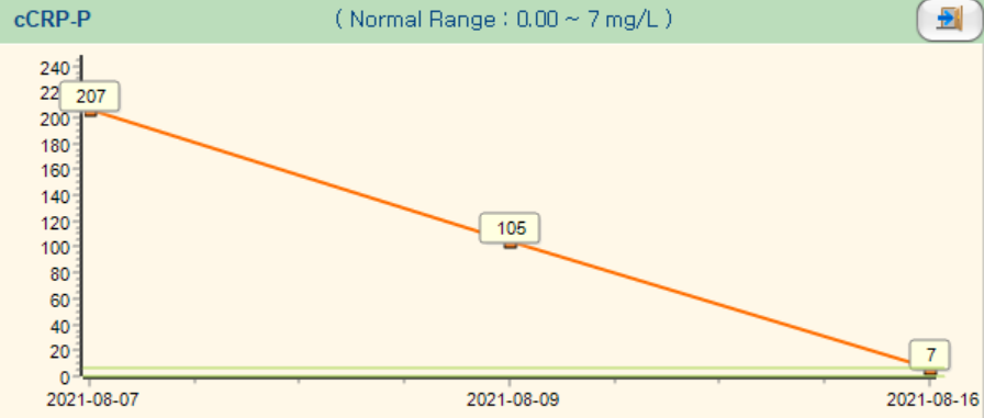 N씨는 3일간 입원하고 퇴원해서 207까지 증가하던 염증치가 정상인 7까지 감소하는 것을 확인했습니다.검사 수치 뿐만 아니라 식욕과 활력을 회복하여 건강하게 지내고 있습니다.