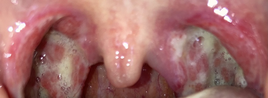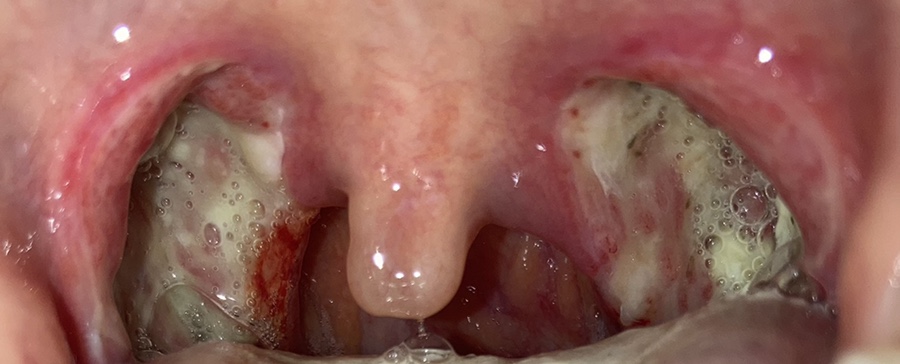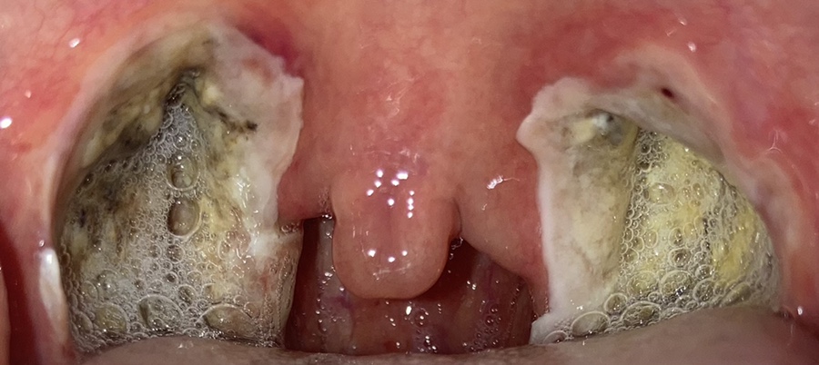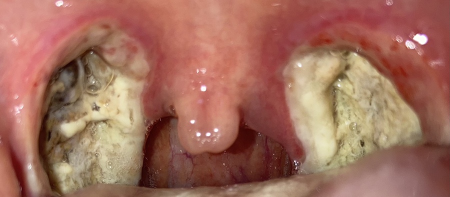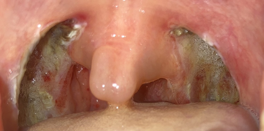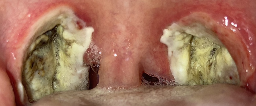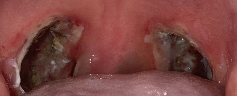 목젖은 가라앉았지만 전기로 부서졌다는데 사흘째가 되자 딱지가 심해졌다. 사진은 셋째 날과 넷째 날이 같았기 때문에 넷째 날은 찍지 않았다.