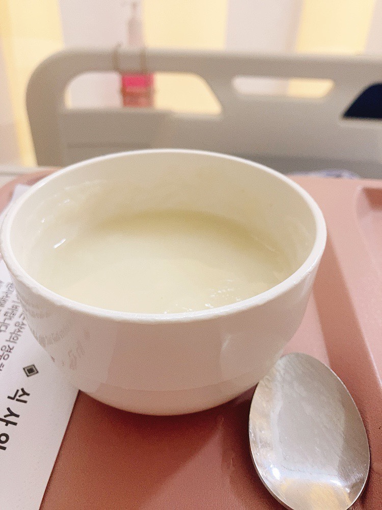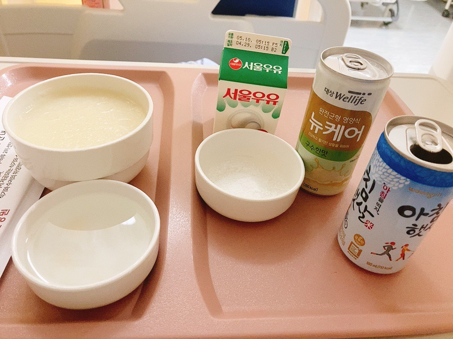 자고 1시간 뒤였는지 밥을 줬는데 이때는 잘 들어가서 미음과 국물을 거의 다 먹었다. 음료는 배부르다