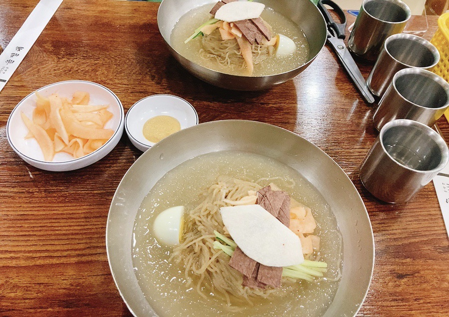 초계국수를 먹으려다 울밀대 평양냉면을 처음 먹게 됐지만 평양냉면의 맛은 완전히 달라졌다. 정말 곰탕에 냉면이 있는 맛? 식초와 겨자를 넣으면 오히려 어울리지 않아. 이 역시 가위로 잘게 썰었는데 씹을 때 혀가 움직일 수밖에 없어 혀도 목도 아팠다. 또 1시간 걸려서 먹었다.
