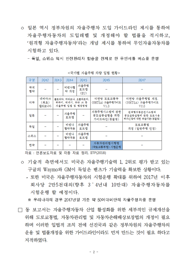 독일 도로교통법은 지난 7월 법률 개정을 통해 ‘운전자 없는 자율주행’ 정의 및 운행 요건 등을 법제화했다고 합니다.
