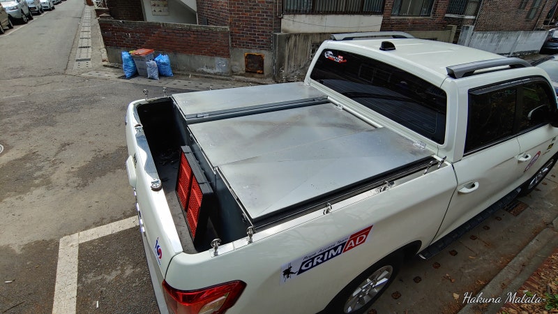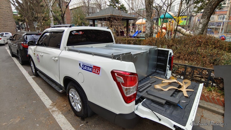 공장에서 공구함이 제작됐다는 소식에 단숨에 달려갔다.그동안 차량을 공차로 타보니 적재함부가 가벼워 도로에서 얼마나 튕겨 나오는지 노이로제가 걸릴 정도여서 빨리 각종 밧줄과 공구를 싣고 적재함에 먹물을 주고 싶었다.픽업화물차라서 짐을 싣는게 날지않을테니까. 하하. 근데…