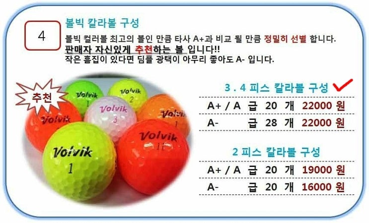 그래서 오늘은 좋은 로스트볼 가격에 가성비까지 갖춘 제품을 어떻게 찾아야 하는지 알려주는 시간을 갖도록 하겠습니다.^^ lost 볼은 다양한 종류와 등급으로 나누어져 있습니다 또한 CC에 나가 회수해야 하는 만큼 원하시는 브랜드의 볼이 바닥나면 정확히 언제 입고될지 모르기 때문에 눈에 들어올 때 먼저 선점하시는게 좋아요!