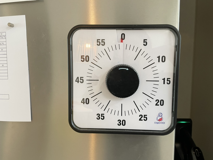 냉장고에 타임타이머를 달아놓고 여기 사용 중