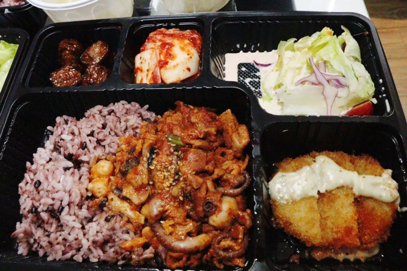 소불고기 도시락도 불고기만 먹어도 배부르더라구요. 양념이 세지 않고 양배추와 양파의 적당한 식감도 있고 고기는 부드러운 것이 조금 달고 매운 맛이 훨씬 젓가락의 가는 맛이었어요.