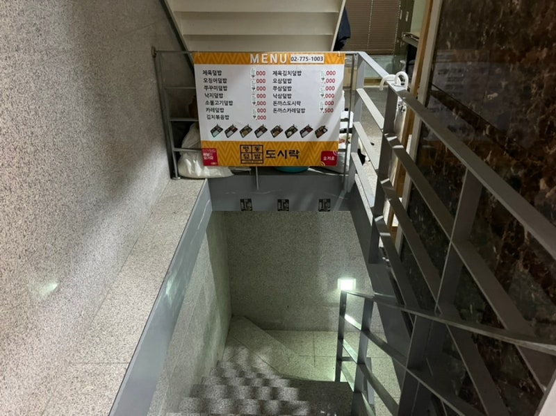 엘리베이터 이용도 가능했지만 건강을 생각해서 계단을 내려갔습니다.전화주문을 해놓고 가서 미리 준비를 해놨거든요.아침 8시부터 이동해서 하루 종일 굶고 저녁을 먹게 되면 정말 많이 먹을 수 있을 것 같았어요.다 맛있어 보여서 뭘 주문해야 할지 결정장애가 됐어요.고민 끝에 낙지덮밥도시락(9,000원), 돈가스덮밥도시락(9,000원), 소고기불고기덮밥도시락(9,000원)을 주문했습니다.