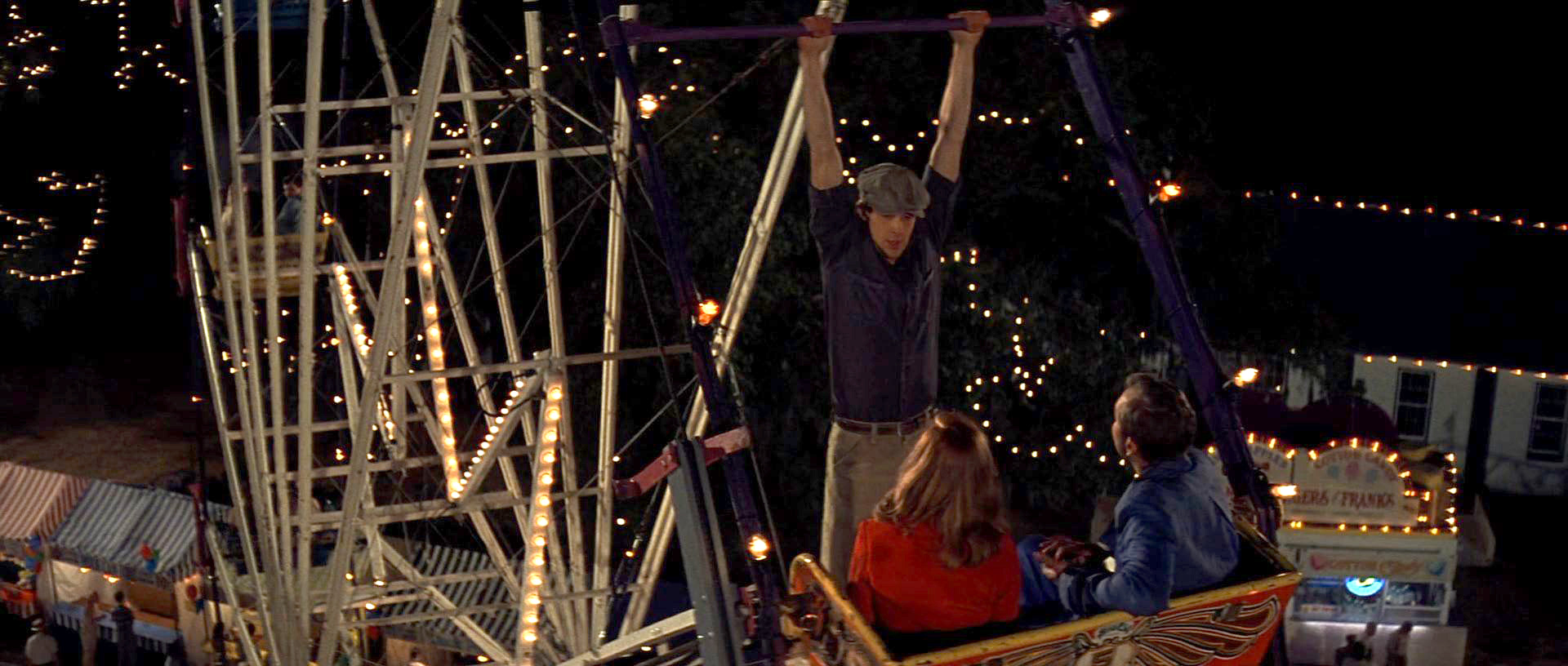 이 장면은 영화를 보지 않은 분들도 엽서나 사진을 통해서 많이 보셨을 겁니다.이 장면이 바로 노아가 앨리를 보고 첫눈에 반해 데이트를 신청하는 장면입니다.관람차에 올라타 자신과 데이트해주지 않으면 여기서 손을 떼겠다는 협박으로 데이트 신청을 받습니다.