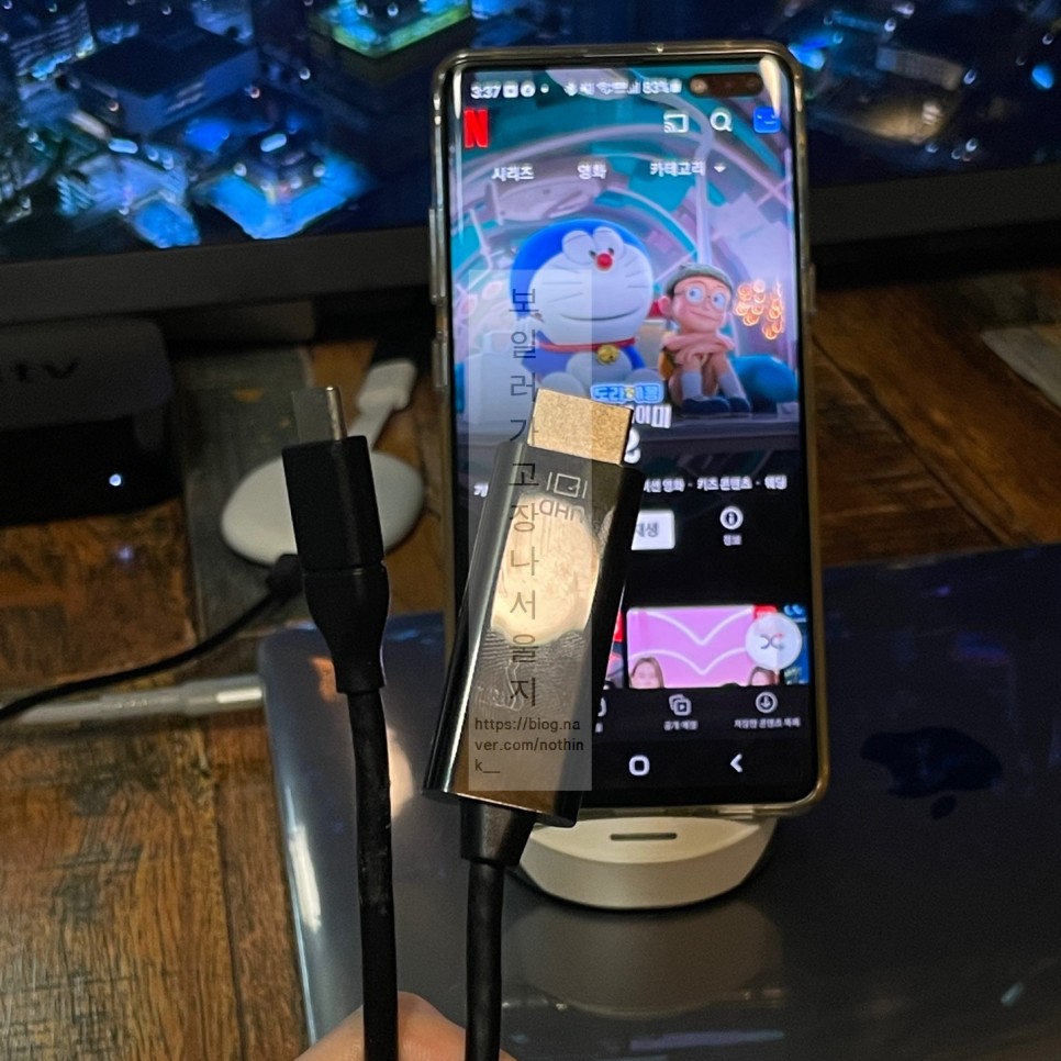 갤럭시 스마트폰의 경우 시중에서 쉽게 구할 수 있는 C타입 to HDMI 미러링 케이블만 있으면 TV에 넷플릭스 앱을 손쉽게 미러링할 수 있습니다.