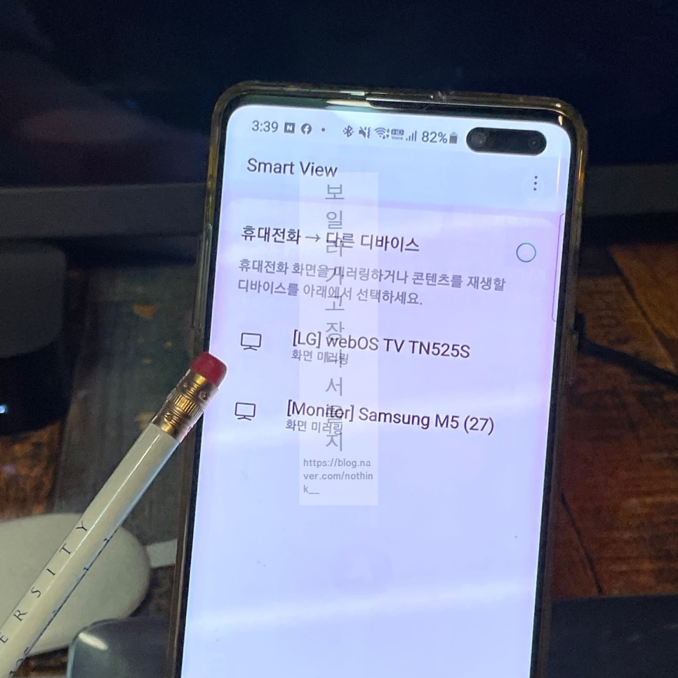 smartview 리스트로 넘어가는 미러링이 가능한 텔레비전 기기 항목을 선택하십시오.