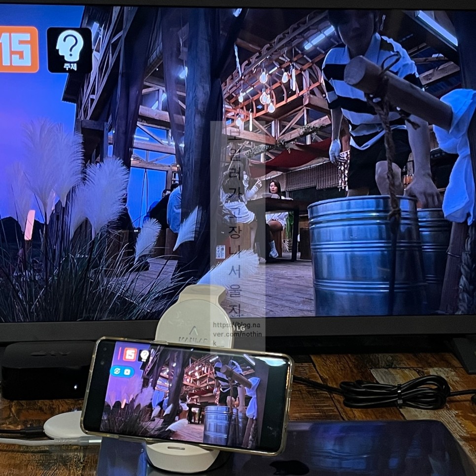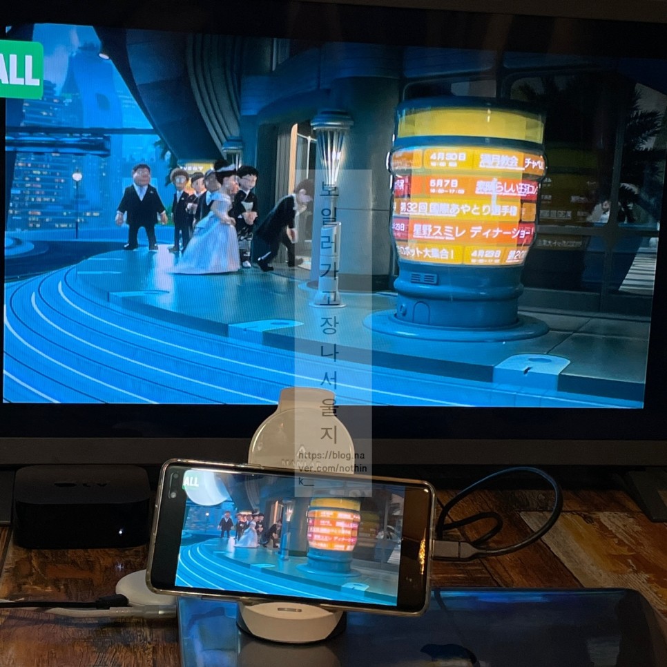 스마트폰과 tv포트에 각각 맞는 단자만 연결하면 위와 같이 바로 일대일 미러링 되는 모습을 확인할 수 있고 바로 사용하면 됩니다.