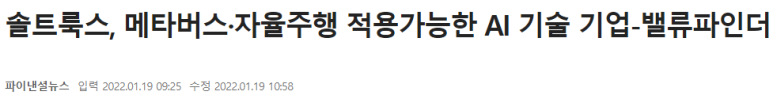 [파이낸셜뉴스] 독일 리서치밸류 파인더는 솔트룩스에 대해 메타버스나 자율주행에 적용 가능한 AI 기술에 따른 향후 혜택이 예상된다고 19일 밝혔다. 투자의견은 따로 제시하지 않았다.