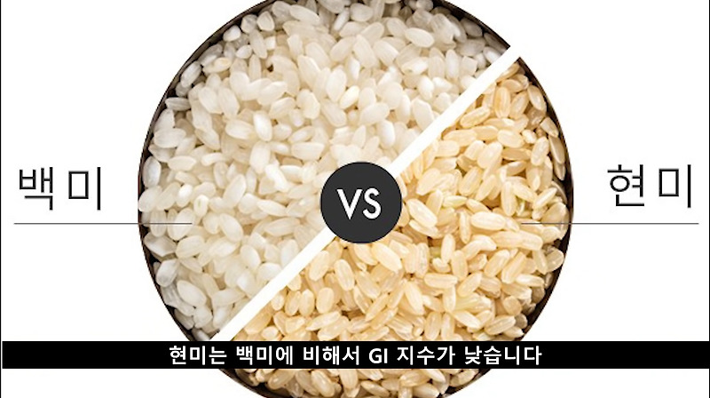 보통 다이어트 식품을 논할 때 얘기되는 것 중 하나가 음식마다 정해져 있는 혈당 지수입니다. 일명 GI지수라고 불립니다. 이 혈당지수가 60을 기준으로 이보다 높으면 소화 흡수되는 속도가 빨라 다이어트를 방해하고 60보다 낮으면 건강에 좋은 음식이라고 할 수 있습니다.현미밥의 경우 이 혈당지수가 60보다 낮은 55 정도이고 밥은 92 정도가 됩니다. (*현미밥과 쌀밥 등의 GI지수는 조사한 기관에 따라 조금씩 차이가 있을 수 있습니다.) 그래서 쌀밥이 현미보다 몸에 소화되고 흡수되는 속도가 빠르다는 것을 의미합니다. 쌀은 가공 처리되어 다당류보다 단당류의 수가 많아집니다. 전체적으로 당질 분자 크기가 작아진다는 거죠. 입자가 작으니까 당연히 몸속으로 빨리 흡수가 되는 거죠.그리고 혈중 포도당 수치가 급격히 올라가면서 이런 습관이 장기간 진행될 경우 당뇨병에 걸릴 위험까지 생길 수 있습니다.