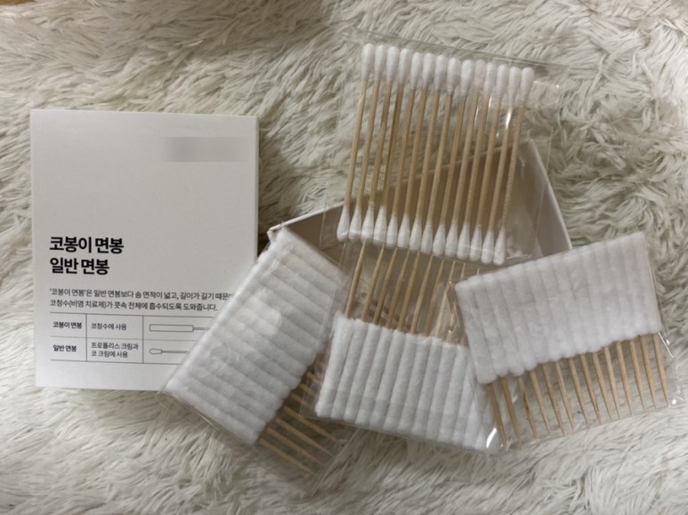 코바느질 면봉은 이렇게 일반 면봉보다 면 부분이 길기 때문에 코청수 약제를 적셔 콧속을 충분히 자극할 수 있습니다.