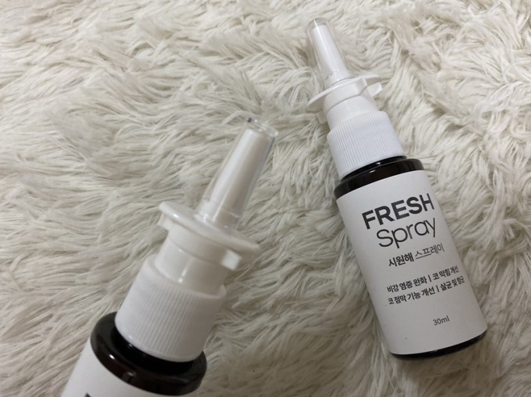 차가워서 스프레이는 증상이 있을 때 수시로 뿌려주고 평소 비염으로 인해 숨이 막힐 때나 코막힘으로 불편할 때 하루 3~5회 정도 뿌려주면 좋다고 합니다.