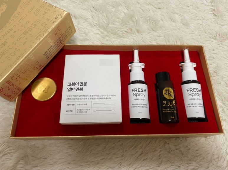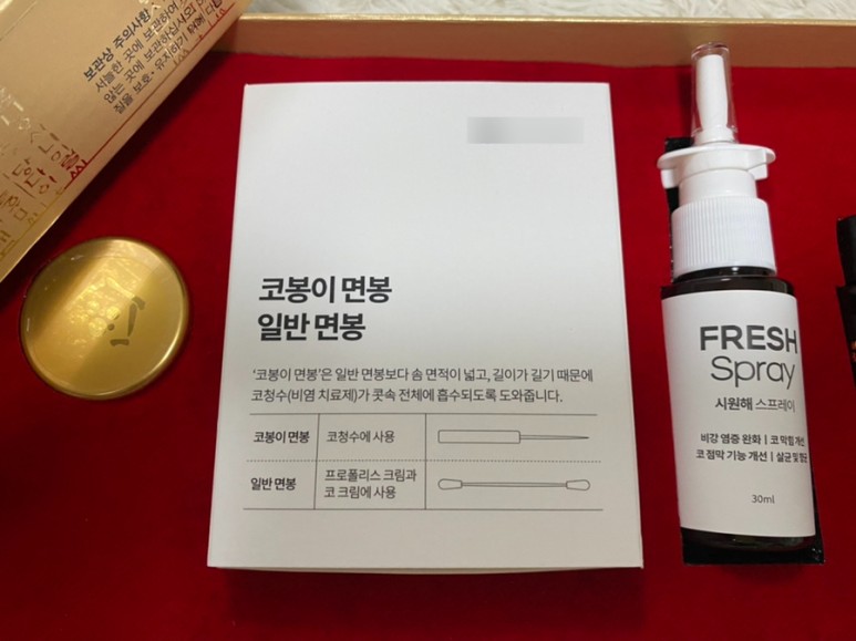 비염 자가치료 키트 알레르기성 비염과 축농증의 원인해결을 위한 자가치료 배농세트입니다1)고름을 유발하는 ‘코청수’ 약제2) 코청수 약제를 묻혀 콧속에 넣는 ‘코 꿰매 면봉’3) 수시로 뿌리는 ‘시원해서 스프레이’4)콧속의 건조를 줄여주는 황금빛 ‘코크림’