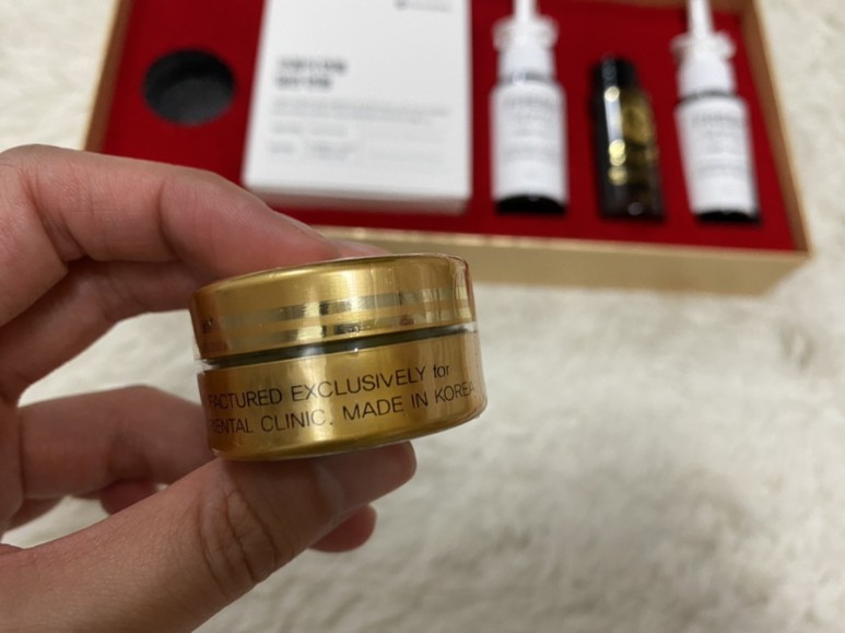 황금색 용기에 담긴 코 크림은 쫄깃한 텍스처로 보습 및 진정 효과가 있답니다.특히 코 점막이 약하거나 건조하면서 예민하신 분, 코피가 자주 나는 분이 사용하기 쉽다고 합니다.