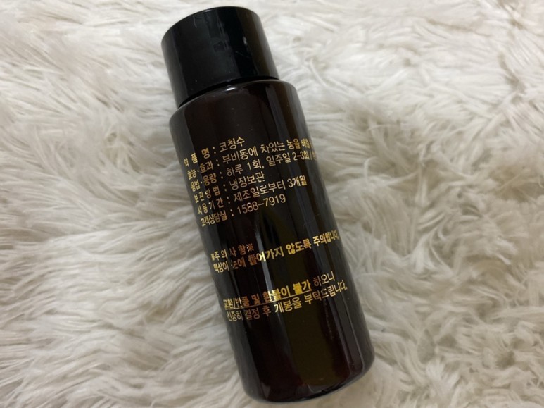 코청수는 부비강에 막혀 있는 고름을 배출시켜 주는 효능이 있습니다.약병 내부에 갈색 액체가 들어있습니다.