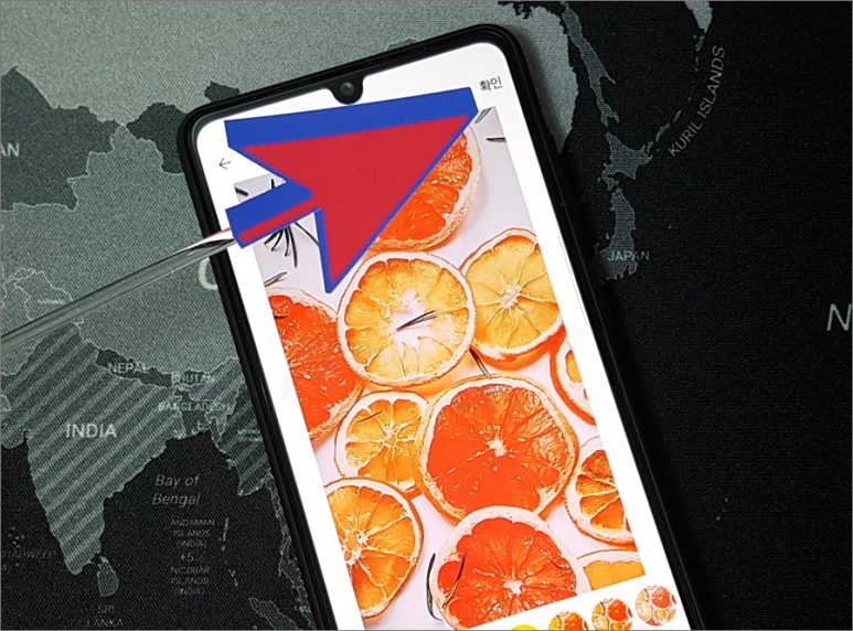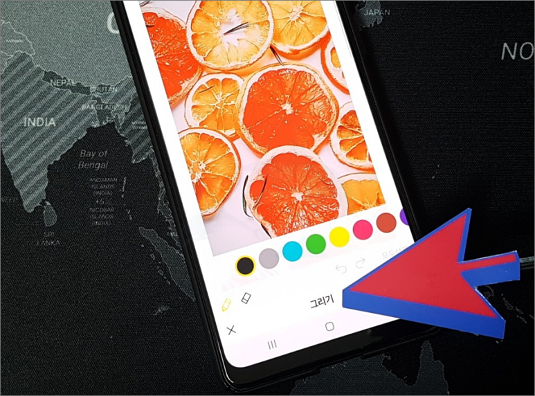 마지막으로 그리기 기능을 이용하여 설정한 사진 위에 낙서나 메모를 할 수도 있습니다.