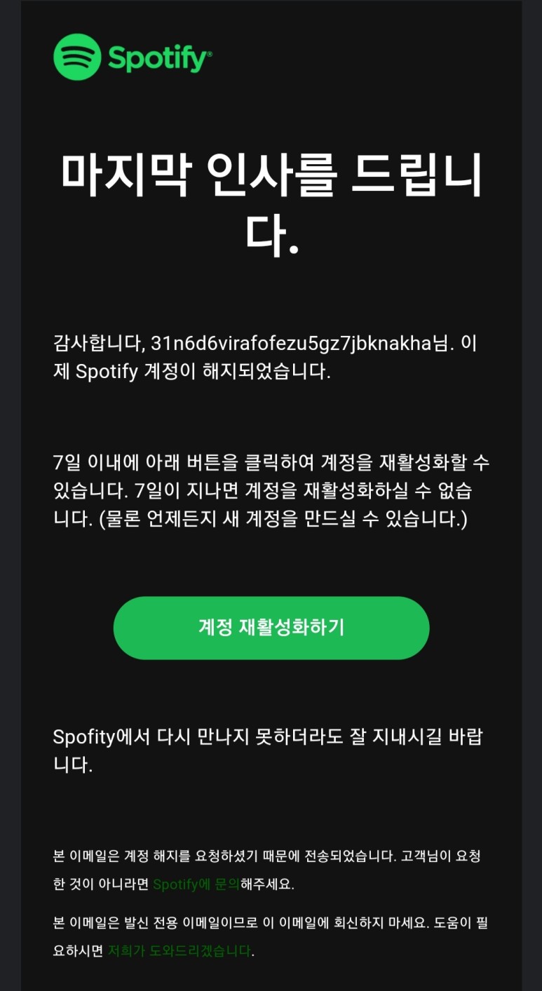 와, 우리 시대에 이렇게 탈퇴하는 곳도 있네.하지만 그게 글로벌 기업의 스포티파이라는 게 믿기지 않는다.