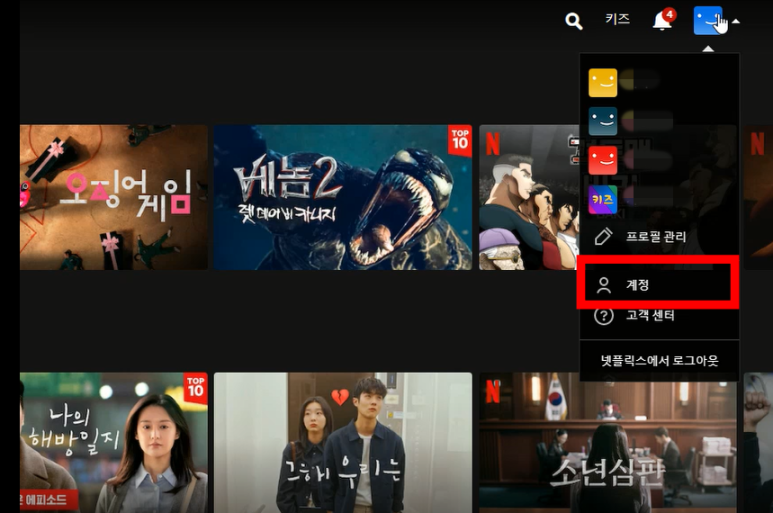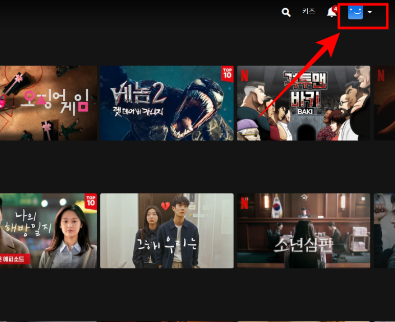 (3) 넷플릭스에 가입한 경우 화면 우측 상단 프로필을 클릭하여 입장합니다.