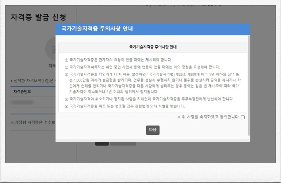 다시 본론으로 돌아가서 큐넷 자격증 사본 인상장형 자격증 신청을 진행해 보겠습니다.