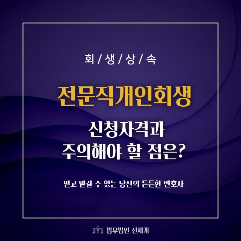 부산전문직 회생은 원스톱 서비스로 해결하자 창원일반회생전문변호사회생이란 무엇입니까?회생과 파산은 구별되는 개념입니다. 파산은 우선 현재의 채무를 확정하고 남은 재산을 청산하고 채권자에게 배분하고 채무를 초기화하는 제도라고 이해하세요. 즉 파산 절차가 완료되면 채무 제로가 되는 것입니다. 회생은 이와는 조금 다릅니다. 채무자에게 일정액의 소득이 있고 채권을 상환하는 것이 어려울 때 법원이 채무자가 채무를 변제하도록 제반 요소를 고려하고 갚을 수준으로 감액하는 제도입니다. 그러므로, 파산과 달리 채무가 완전히 탕감이 될 수는 없다는 것입니다. 다만, 이 때이지도 연체한 세금 그 다른 나라에 대한 빚은 면책되지 않습니다.결국 회생 제도는 법원의 인가 결정만 내리면 채권자의 손해가 강요되는 제도입니다. 즉 법원이 회생을 알아주면 채무자의 입장에서는 생계비를 제외한 최저 수준만 채권자에게 갚으면 채무가 완전히 탕감이 된다는 것입니다. 한국에서는 회생의 종류와 절차를 다소 복잡하게 규정하고 있습니다. 이는 다음 절에서 살펴봅시다.부산전문직 회생은 원스톱 서비스로 해결하자 창원일반회생전문변호사부산 전문직 회생의 특징전문직, 특히 의사와 한의사 같은 고소득 전문직의 파산 신청은 법원에서 인용되지 않는 확률이 높아요. 파산은 미래의 소득이 얼마나 발생할지 불확실한 채무 초과 상태의 채무자에게 주로 인정되지만 전문직은 안정된 수입이 보장되고 있다고 보고 있기 때문입니다. 그래서 전문직 종사자가 경제적 파탄 상태에 도달한 경우 회생 절차를 선택해야 합니다.그렇다고 한국에 별도의 전문직 회생 제도가 있다는 것은 아닙니다. 이미 결정되어 있는 회생 제도 가운데 전문직은 안정된 수입원이 있다는 전제 하에서 선택 선택 사항이 일반적인 경우보다 다소 제한되고 있을 뿐입니다.한국의 회생 제도는 어떤 것이 있을까요? 일반적인 경우 가장 활용되는 것은 개인 회생 제도입니다. 급여 소득과 영업 소득을 불문하고 무담보 채무 10억원 이하 또는 담보 채무 15억원 이하의 경우에 신청할 수 있어요. 비교적 최근 생긴 간이 회생이라는 제도도 있습니다. 개인의 경우 영업 소득자만 신청이 가능합니다. 무담보 채무가 10억원을 넘거나 담보 채무가 15억원을 초과하면서 50억원 이하의 경우 비교적 간소화된 절차를 통해서 회생 절차를 마칠 수 있습니다.전문직 종사자가 선택할 수 있는 것은 통상 일반 재생입니다. 급여 소득자의 경우, 무담보 채무가 10억원을 초과하거나 담보 채무가 15억원을 초과하면 신청할 수 있고, 개인 영업 소득자라면 총 채무가 50억원을 초과할 경우에 신청합니다. 일반 회생 절차는 개인 회생 절차보다 요건이 조금 까다롭습니다. 우선 동의가 필요 없는 개인 회생과 달리 일반 회생에 성공하기 위해서는 담보부 채권자의 3/4이상, 무담보 채권자의 2/3이상의 동의가 필요합니다. 또, 변제 기간이 3년 개인 회생에 비해서 상환 기간이 10년으로 긴 법원의 예납 비용이 개인 회생보다 높다는 점도 있습니다.부산전문직 회생은 원스톱 서비스로 해결하자 창원일반회생전문변호사부산 전문직 회생, 전문가와 함께하지 않으면 성공할 수 없습니다.회생 절차는 채권자에 어느 정도 희생을 강요하는 제도입니다. 그래서 절차가 매우 복잡하고 인가 결정이 내려질 때까지 오랜 시간과 비용이 필요합니다. 얼마나 복잡해지는지를 체감하기 위해서 간단히 설명하면 신청을 하고 그리고 14일 이내에 변제 계획안을 제출해야 합니다. 여기에서 기각될 수 있습니다. 기각되지 않으면 개인 회생 위원을 선임하는 보전 처분 중지 명령 및 포괄적 금지 명령이 계속되면서 이 절차가 끝날 때 처음 개시 결정이 내려집니다. 여기까지 신청일부터 1개월 가량 지난 시점에서 겨우 본격적으로 회생 절차가 시작되었다고 생각하면 됩니다.재생 법원도 지역마다 각각의 양식과 세세한 차이가 있습니다. 특히 변제 계획안을 제출하거나 집회를 할 때 공략해야 할 부분이 지방마다 조금씩 다르다는 것입니다. 부산에서 전문직 회생을 희망하신다면, 일대에서 풍부한 실무 경험을 쌓은 전문가 집단과 함께 하게 인가 결정에 대한 지름길이죠.저는 부산을 비롯한 경남 지역에서 회생 파산 사건에 대한 높은 전문성과 그 실력을 인정 받고 있습니다. 수많은 업무 수행 경험과 노하우를 통해서 각 상황에 맞는 최적의 솔루션을 제공합니다. 현재 경제적 어려움에 의해서 재생, 파산을 생각하고 있는 분이라면 나 진·수현 변호사를 찾아 주세요.지금까지 법무 법인 신세계의 징·수현 변호사였습니다감사합니다。회생절차는 채권자에게 어느 정도 희생을 강요하는 제도입니다. 따라서 절차가 매우 복잡하고 인가 결정이 내려지기까지 오랜 시간과 비용이 필요합니다. 얼마나 복잡한지를 체감시키기 위해서 간단히 설명하자면 신청을 하고 그로부터 14일 이내에 상환계획안을 제출해야 합니다. 여기서 기각될 수 있습니다. 기각되지 않으면 개인회생위원을 선임해 보전처분 중지명령 및 포괄적 금지명령이 이어지고, 이 절차가 끝났을 때 비로소 개시결정이 내려