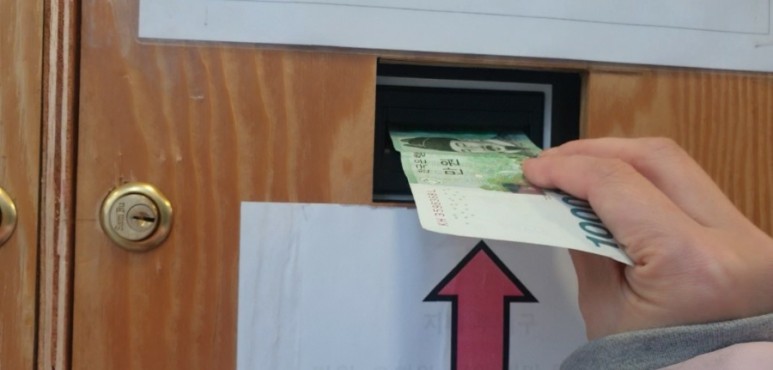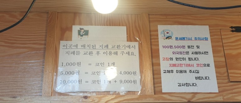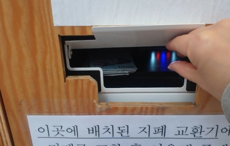 무인이라 망설이지 않고 자세하게 쓰고 있어요.지폐 교환기가 두 군데 있어요.