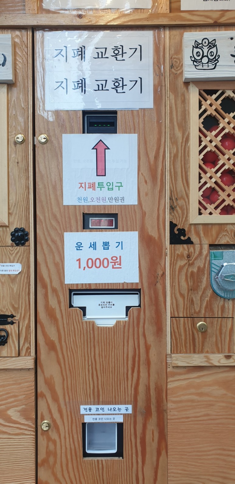 ‘운세명당’이라고 써있는 코인을 넣고 돌려~