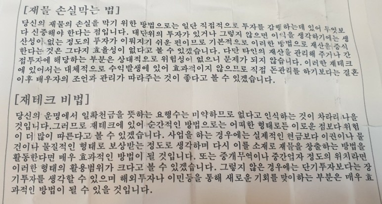 저는 재물운을 보려고 합니다.